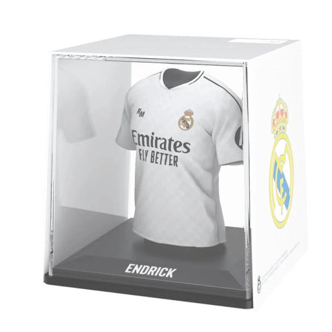 This exceptional collectible features a detailed vinyl figure of Endrick's iconic Real Madrid 2024/25 home jersey. The design itself is a timeless tribute to the club's rich heritage, featuring the classic all-white aesthetic with subtle yet sophisticated black accents. The jersey incorporates a unique houndstooth-style patterning, drawing inspiration from the "chulapo" outfits of Madrid's traditional San Isidro Fiesta, adding a touch of cultural elegance to its sleek, modern look. Every element is faithfully captured, making it a true miniature representation of the kit he wears while making his mark at the Santiago Bernabéu. In his debut 2024/25 season, Endrick scored 7 goals in 37 appearances across all competitions, including a notable 5 goals in the Copa del Rey, showcasing his immense potential and knack for finding the back of the net.