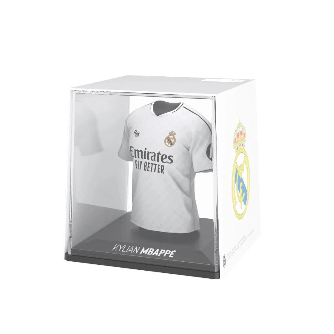 This meticulously designed "MyJersey" figure perfectly encapsulates the excitement of Mbappé's transfer, showcasing a stylized representation of his iconic Real Madrid home jersey for the 2024/25 season. Crafted with precision and vibrant detail, it proudly displays the classic white of Real Madrid, complete with club crest and authentic design elements, signaling a new era at the Santiago Bernabéu.