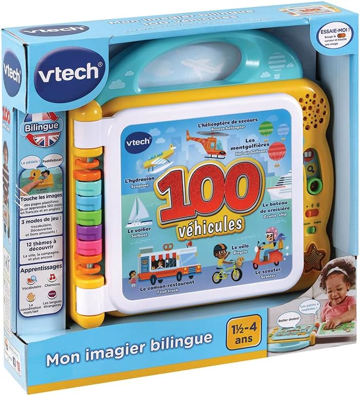 Age: From 18 months to 4 years, to discover 100 words of everyday vocabulary and all means of locomotion.