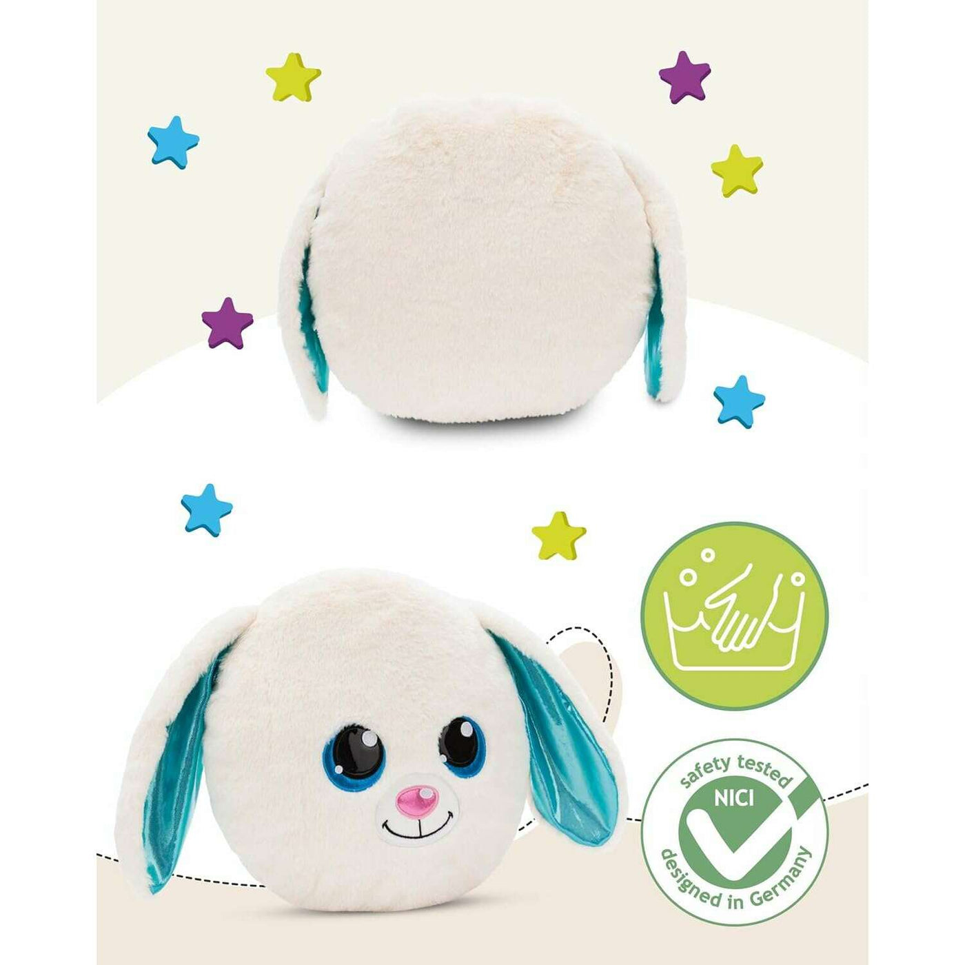 Cuddly cushion for children and babies: cuddly soft and incredibly cute. With joyfully radiant glitter eyes and loving face, long floppy ears and cute snub nose, the rabbit Wolli-Dot cushion inspires children and babies