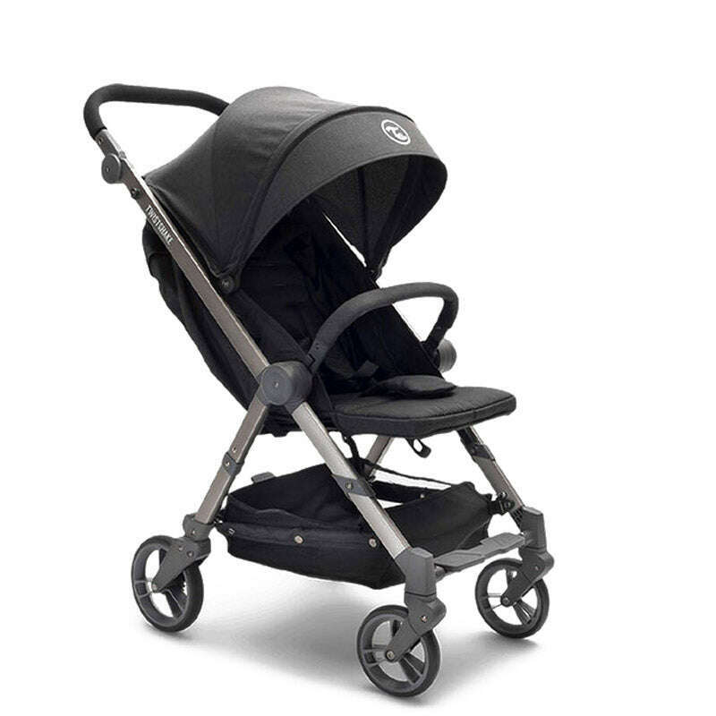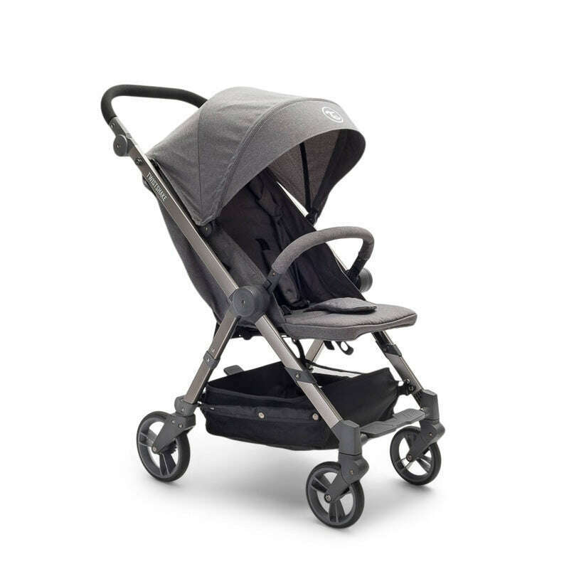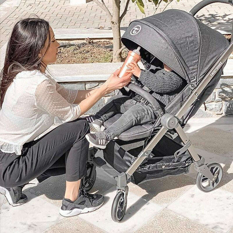Experience the world with your baby with this stylish, trendy and functional stroller that takes you places with extra comfort. The Twistshake Tour gives your baby an exceptionally mobile, gentle ride with springs and swivel wheels that are puncture-free – ideal for an urban lifestyle. Take a break and enjoy the scenery with your baby simply by clicking on the brake, which is conveniently located between the rear wheels. With its smart, lightweight design, you can easily collapse the stroller without removing the seat and carry it with its smart handle, perfect for when you travel! The hood is stylish and easy for you to fold up and down in a single-handed grip. Despite its compact design, the seat has a wide back support that gives your baby extra space with plenty of room for warmer clothes during the winter months. The rear part also has a soft inner lining for a more comfy feel, a peep-hole so you can keep an eye on your baby when sleeping, and two positions to sit or lie down, as does the footrest. Carry your baby’s supplies or heavy shopping in the basket under the stroller, which can hold about 3 kg. The stroller has integrated buckles for your baby’s safety. You can choose between the colours black, grey and beige.